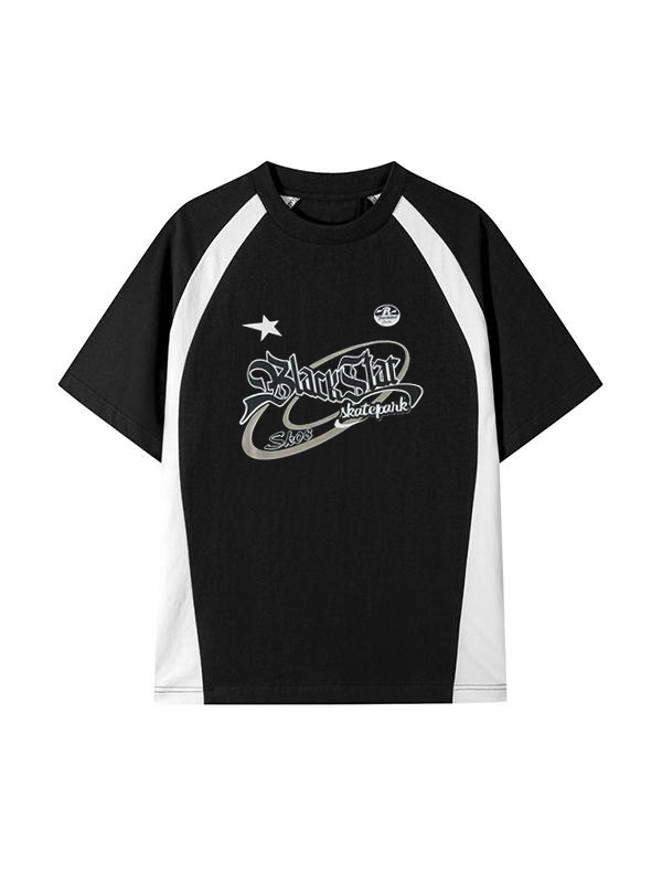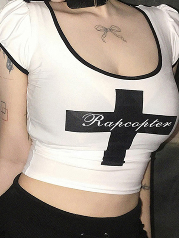 Cross Letter Printed Bubble Sleeve Short Sleeve Tee