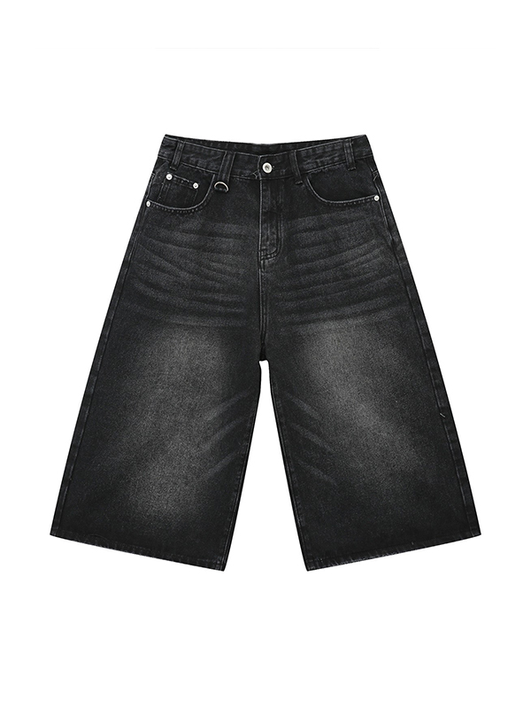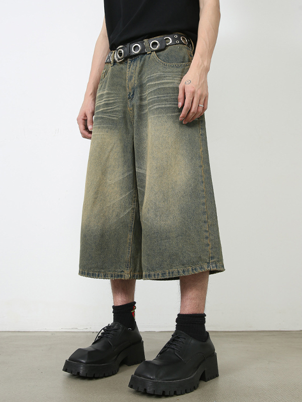 Men’S Retro Washed Wide Leg Straight Denim Shorts