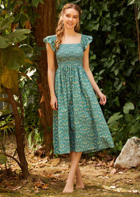 Vestido midi de estilo vintage con gafas de sol