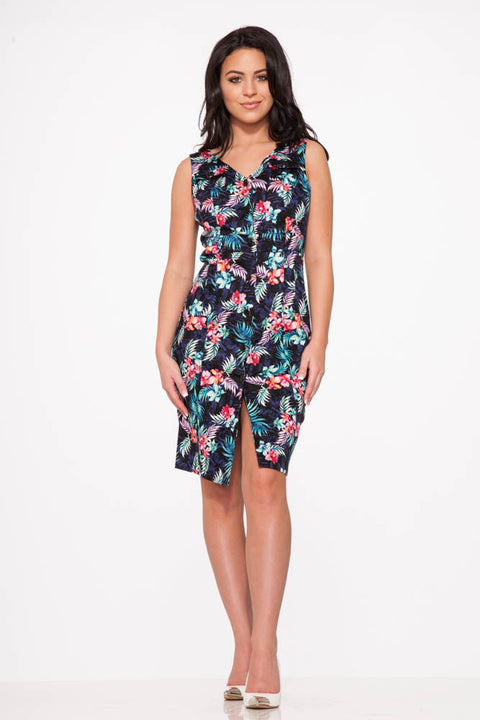 Vestido hawaiano azul marino estilo swing