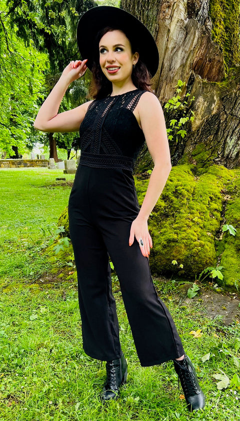Poder, aplomo y un toque de peligro: el mono Branwen es tu respuesta oscura y elegante a los sueños góticos corporativos. Una versión a medida de nuestro querido vestido Agatha, este mono presenta una cintura ceñida, una silueta de pierna ancha y, sí, bolsillos, porque las brujas van en serio. El corpiño con ribete de encaje añade un toque de rebeldía romántica, mientras que la espalda descubierta aporta la intriga justa para las salas de juntas o los paseos en escoba. Estructurado y hechizante a partes iguales.