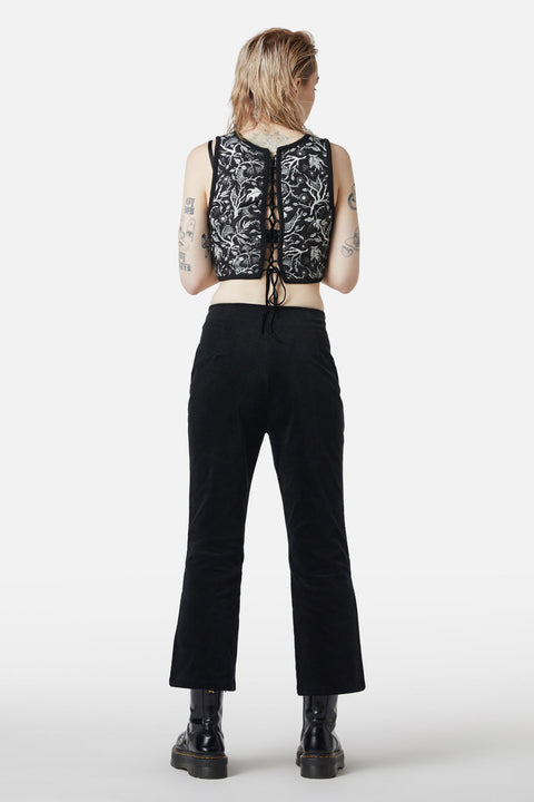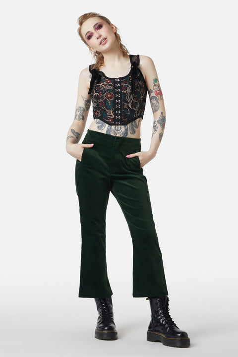 ¡Adéntrate en la sofisticación con estos impresionantes pantalones acampanados de terciopelo de Dangerfield! Con una cintura ajustada que favorece tu figura, estos pantalones de pierna acampanada aportan un toque de glamour a cualquier conjunto. Con prácticos bolsillos laterales y cierre de cremallera frontal, combinan estilo y practicidad sin esfuerzo.