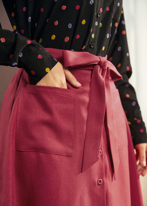 Añade un toque de encanto vintage a tus looks diarios con la Falda Romantic Rendezvous de nuestra marca ModCloth. Esta falda de corte A con botones frontales cuenta con bolsillos de parche extragrandes, un cinturón extraíble y una caída suave que favorece a cualquier figura. Su rico tono baya lo convierte en la combinación perfecta para suéteres acogedores, blusas estampadas o tus tacones favoritos para las vacaciones: romance en movimiento, sin necesidad de una ocasión especial.