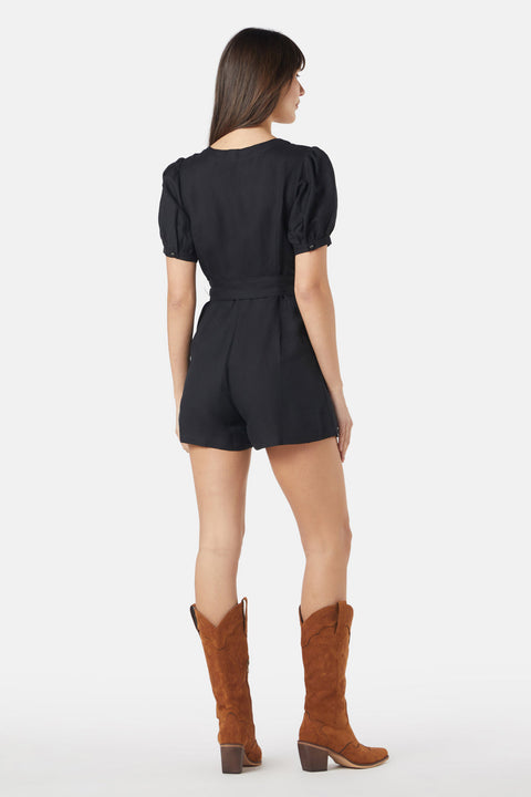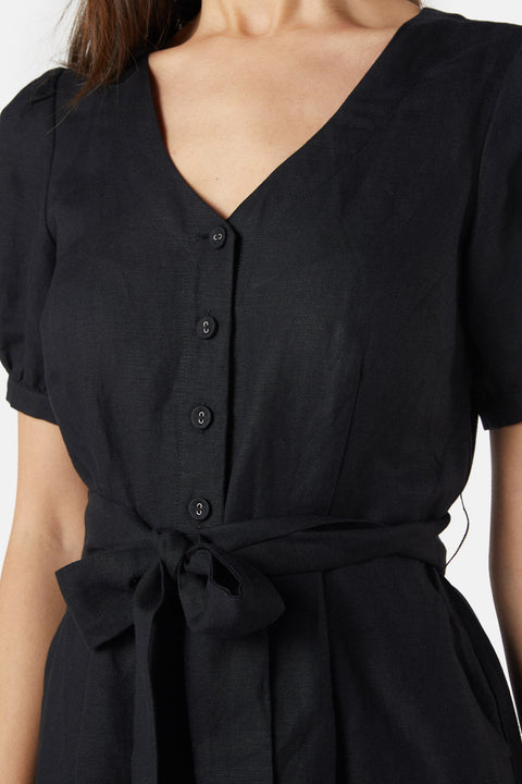 Ponte el mono Bianca cuando quieras lucir espectacular, pero solo si quieres acaparar todas las miradas con un estilo increíble. Este no es un mono cualquiera; es una belleza negra con un escote en V sutil y un cierre de botones para un toque especial. Las mangas cortas abullonadas le dan un toque dramático, mientras que las pinzas grandes estilizan la cintura para una silueta favorecedora que todas deseamos. Pero la cosa no termina ahí: con su corte corto y pernera ancha, tus piernas lucirán interminables, y los prácticos bolsillos laterales te permiten tener tus imprescindibles siempre a mano (porque ¿a quién no le gustan los bolsillos ). Confeccionado con una mezcla de lino y algodón de primera calidad, el mono Bianca es tu nueva prenda favorita para llamar la atención sin sacrificar la comodidad. Ya sea para un brunch o una noche de chicas, se convertirá en la prenda más valiosa de tu armario.