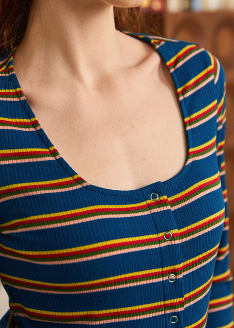Conoce la blusa que dice “Soy encantadora sin esfuerzo, gracias por notarlo.”La blusa Lost in Love con mangas acampanadas de nuestra marca ModCloth regresa con un nuevo y vibrante estampado de rayas que aporta un toque retro instantáneo a tu guardarropa. El suave tejido de punto acanalado se ajusta perfectamente, el escote redondo añade un favorecedor toque de dramatismo, ¿y esas mangas acampanadas Pura poesía de los años 70 en movimiento. Úsala para ocasiones formales, informales o deja que te haga el coqueteo: esta blusa sabe exactamente cómo hacer una entrada triunfal sin despeinarse.