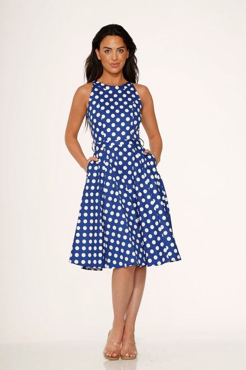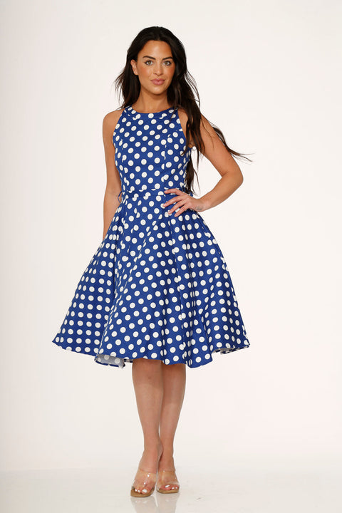 Atemporal y elegantemente sencillo, el vestido azul de lunares de Orchid Bloom es un básico de inspiración vintage que nunca pasa de moda. Con una base azul marino adornada con divertidos lunares blancos, esta favorecedora silueta acampanada es perfecta para usar de día y de noche.