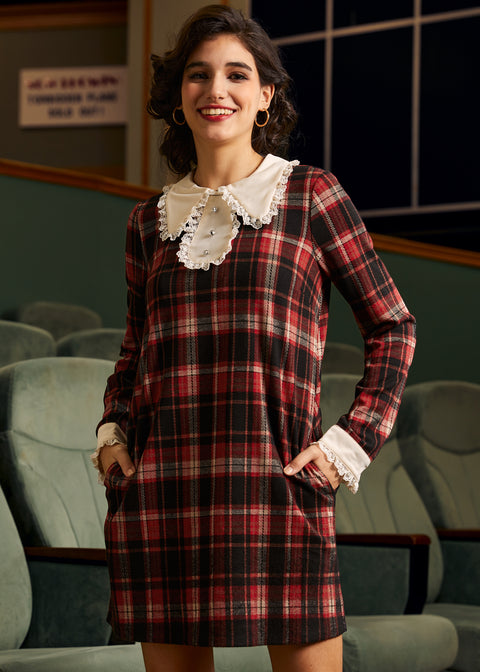 El vestido recto con estampado de hojas encamisadas de nuestra marca ModCloth presenta la elegancia atemporal del otoño con un toque moderno. Confeccionado en suave tejido Ponte, este vestido recto de cuadros rojos armoniza comodidad con elasticidad media, asegurando un ajuste favorecedor para cualquier silueta. El diseño se realza con delicados detalles de encaje y una tapeta en contraste, que aporta un toque de fantasía a la silueta estilizada. El cierre de botones y los prácticos bolsillos laterales combinan funcionalidad y estilo. Perfecto para visitar galerías de arte o para un picnic otoñal, este vestido añade un toque mágico a tu guardarropa.