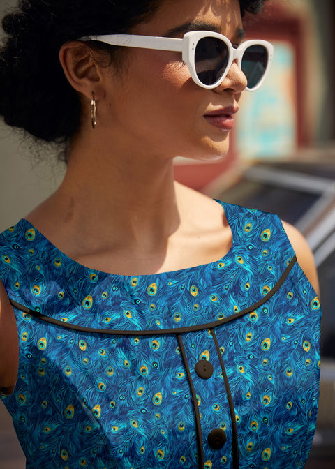 ¿Buscas un vestido clásico estilo vintage ¡Nuestro corte Elizabeth con todos sus detalles es todo lo que podrías desear y más! Mostrado en nuestro estampado Peacock, este vestido de algodón presenta detalles de ribete en todo el corpiño con botones no funcionales en la parte delantera, cintura con pliegues que favorecen la figura, una falda de inspiración vintage digna de dar vueltas con bolsillos laterales ocultos y un cierre de cremallera en la espalda.