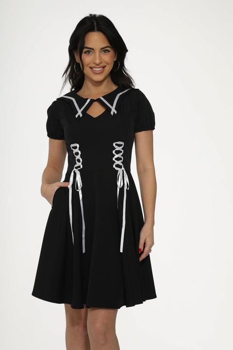 Lo clásico se une al dramatismo en el vestido gótico swing con ribete blanco y negro de Orchid Bloom. Con un llamativo ribete de contraste y una silueta swing de inspiración vintage, este vestido evoca la elegancia gótica atemporal con un borde nítido y estructurado, perfecto para eventos especiales, estilos de moda alternativa o un look diario que destaque.