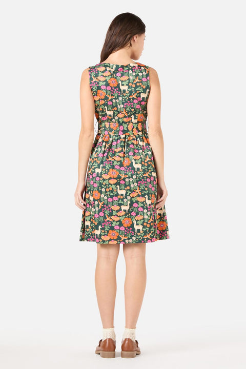 Adéntrate en un mundo de cuento de hadas con el vestido sin mangas con escote en V Llama de Princess Highway: un estilo caprichoso de largo medio estampado con encantadoras llamas, pájaros y exóticas flores de inspiración medieval. Con su encanto relajado y su estampado divertido, es perfecto para días soleados y paseos por el mercado.