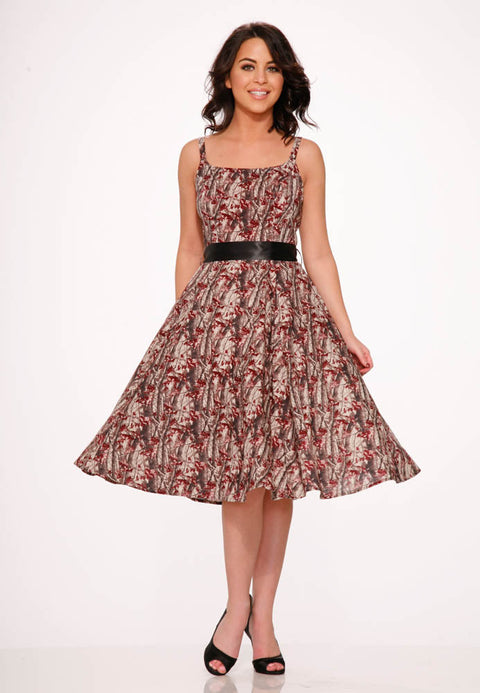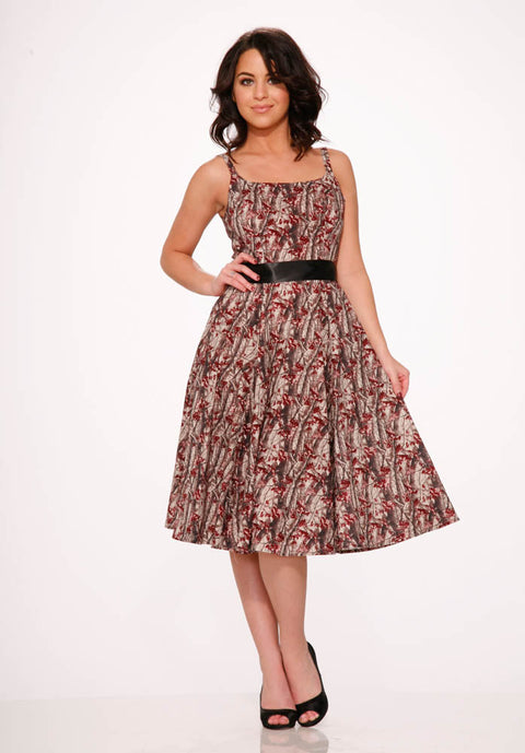Adéntrate en un ensueño boscoso con el vestido Sylvania Swing de Orchid Bloom. Este modelo de inspiración vintage presenta un encantador estampado de bosque en ricos tonos tierra, perfecto para añadir un toque de fantasía de cuento de hadas a tu armario. Los tirantes trenzados ajustables y la cinturilla satinada completan el look con estilo.
