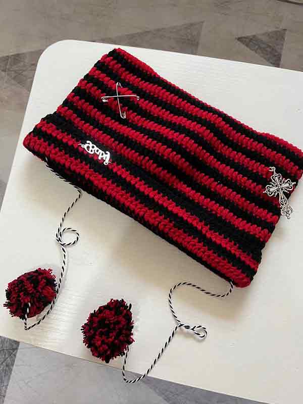 Stripe Cat Design Vintage Pendant Beanie Hat