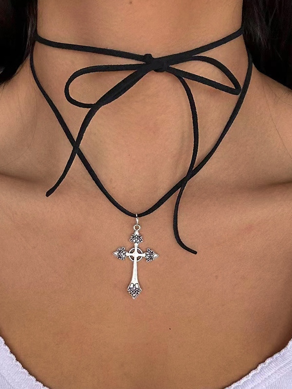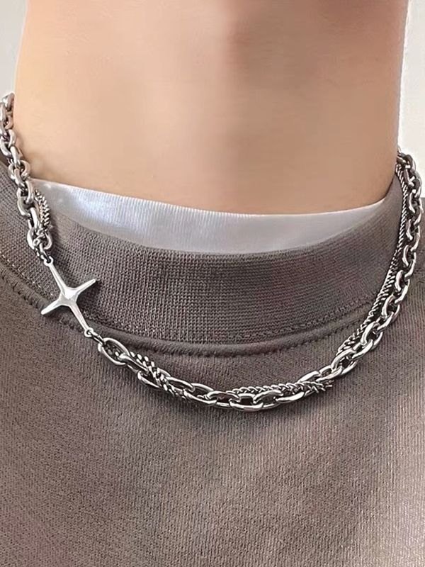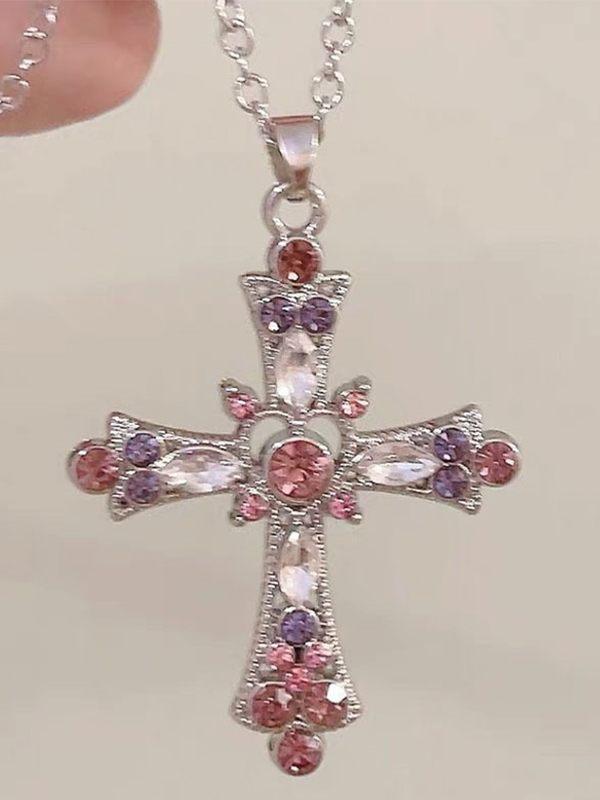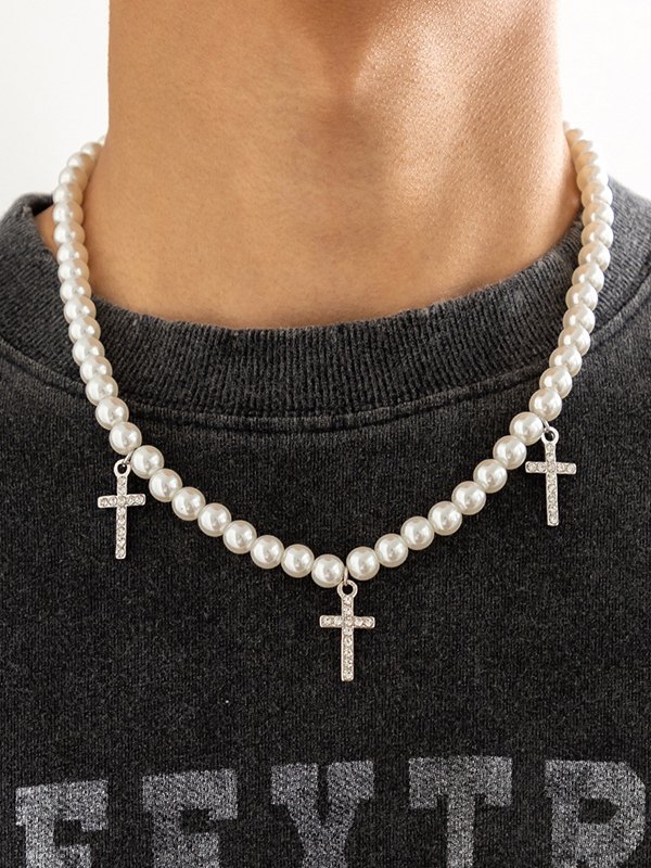 Men’s Rhinestone Cross Faux Pearl Necklace