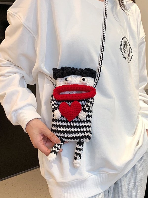 Hand Made Crochet Knit Cartoon Phone Crossbody Bag