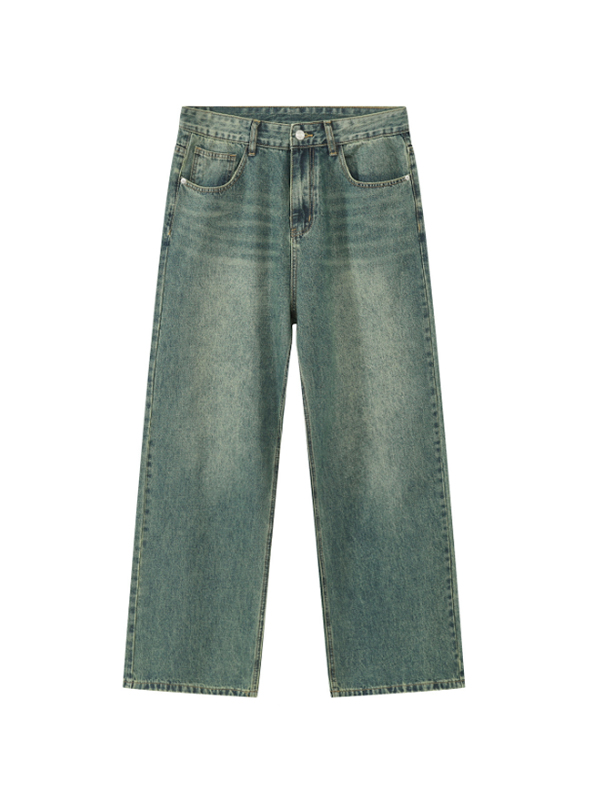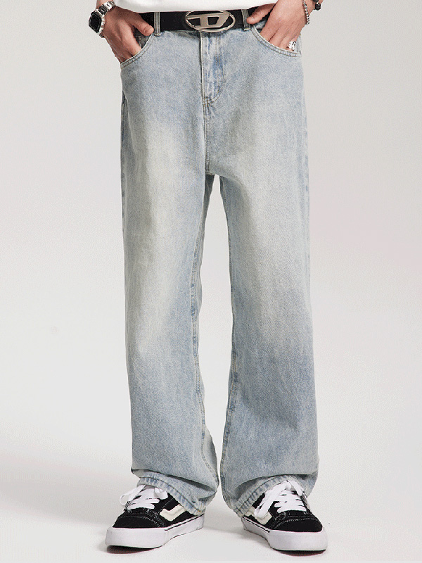 Men’s Vintage Wash Straight Leg Loose Jeans