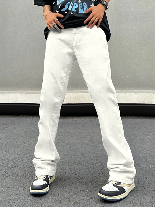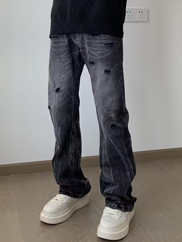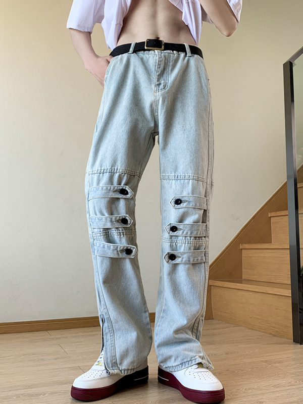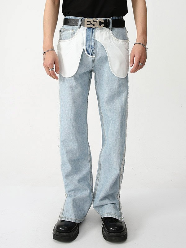 Men’s Zip Fly Patchwork Straight Leg Jeans