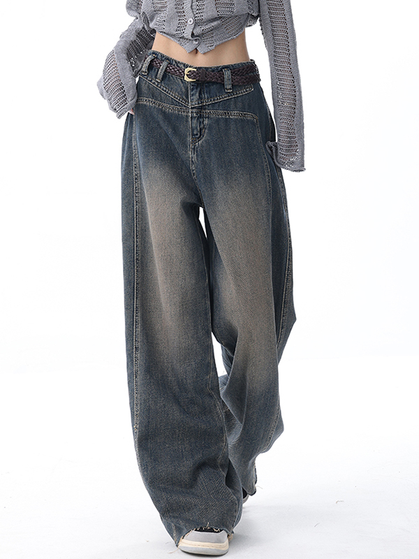 Washed Raw Edge Wide Leg Jeans