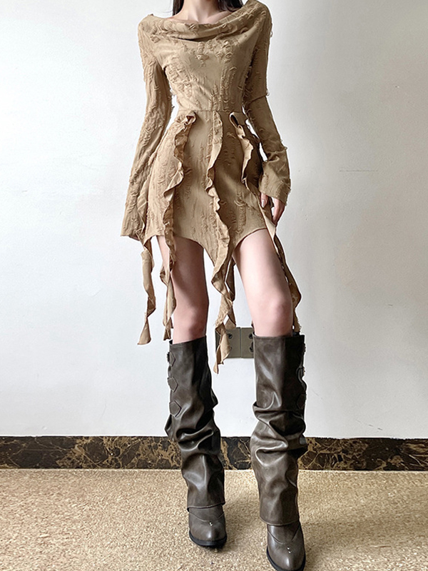 Wasteland Style One-Shoulder Pleats Mini Dresses