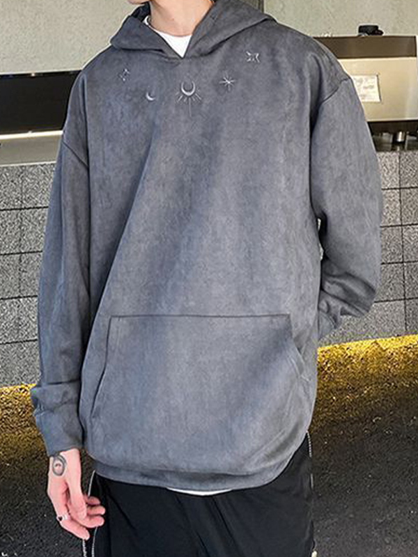 Men’s Suede Moon Star Embroidery Oversized Hoodie