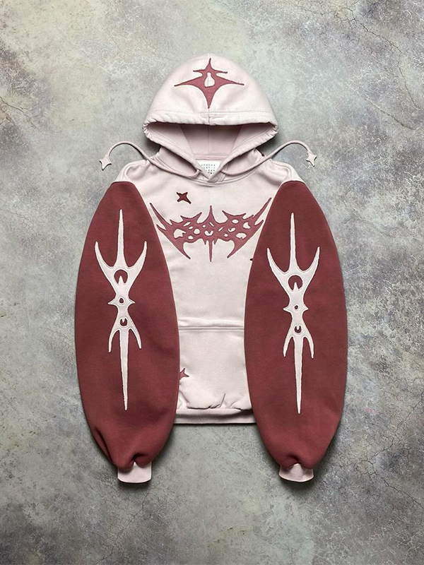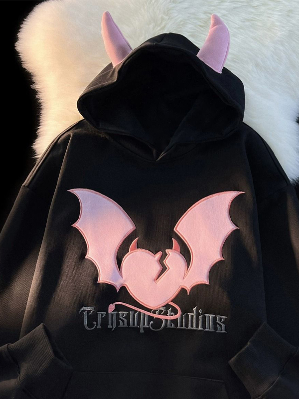 Vintage Contrast Color Devil Embroidery Styling Oversized Hoodie