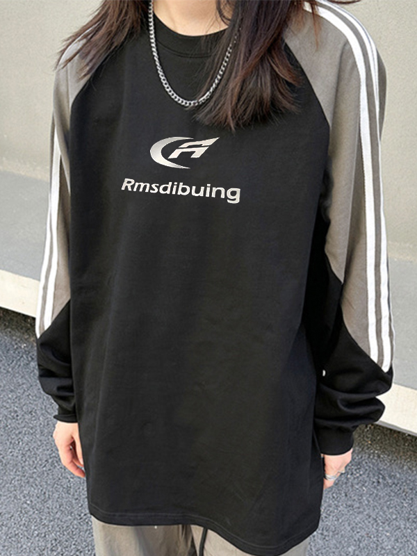Vintage Print Piping Raglan Crew Neck Sweatshirt