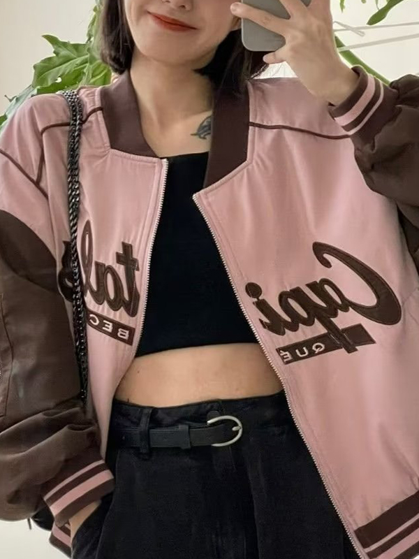 Vintage Contrast Splice Raw Trim Zip Up Denim Jacket