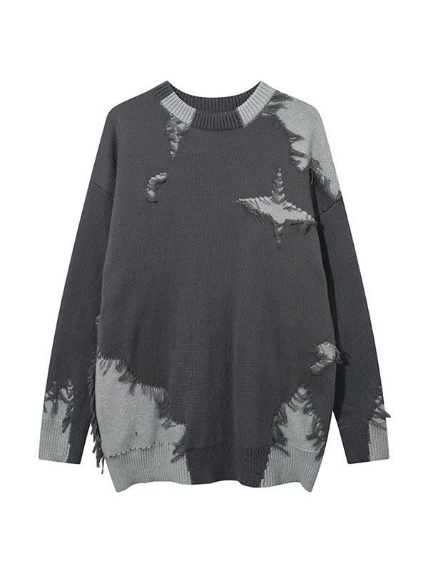 Men’s Irregular Contrast Color Splice Frayed Design Sweater