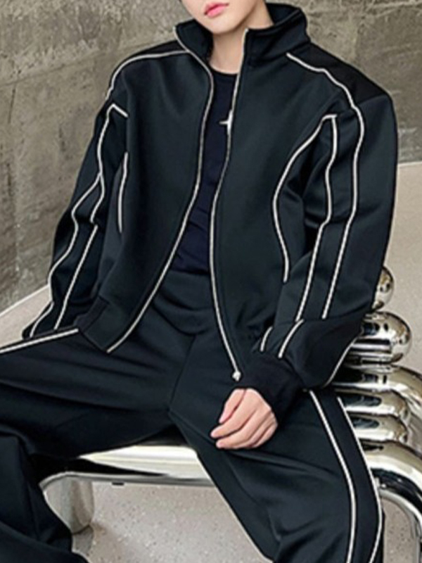 Men’s Contrast Color Line Splice Long Sleeve Tracksuit Set