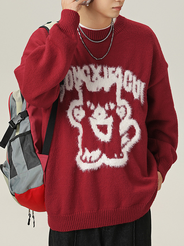 Cartoon Hand-Painted Imitation Mink Round Neck Sweater