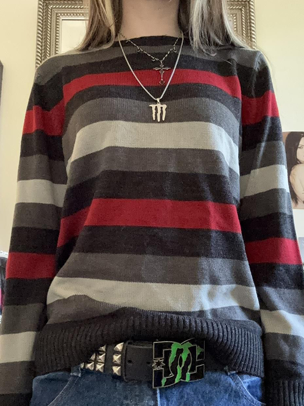 Men’s Contrast Color Stripe Pullover Knit Sweater