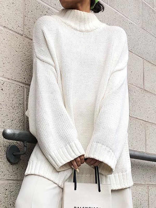 Solid Crew Neck Cape Sleeve Slit Sweater