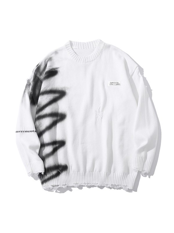 Men’s Irregular Contrast Color Splice Frayed Design Sweater