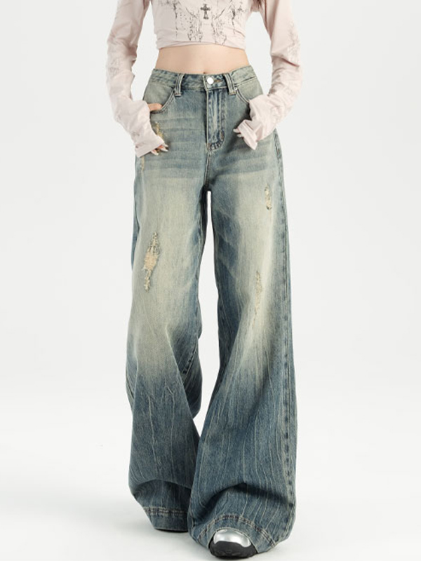 Hot Girl Washes Distresses Low Waist Flare Jeans