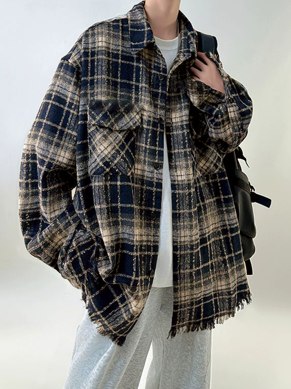 Men’s Vintage Plaid Tassel Detail Jacket