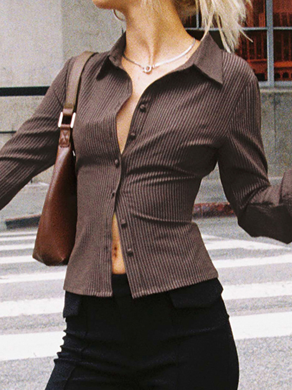 Pinstripe V Neck Breasted Long Sleeve Blouse