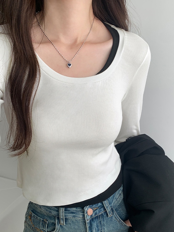 Contrast Color Fake Two Piece Long Sleeve Knit