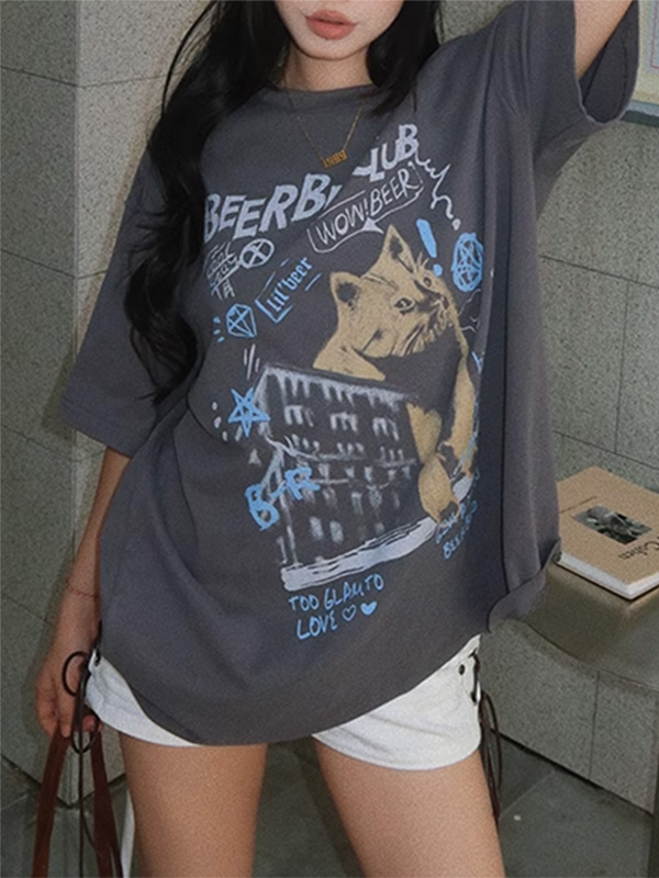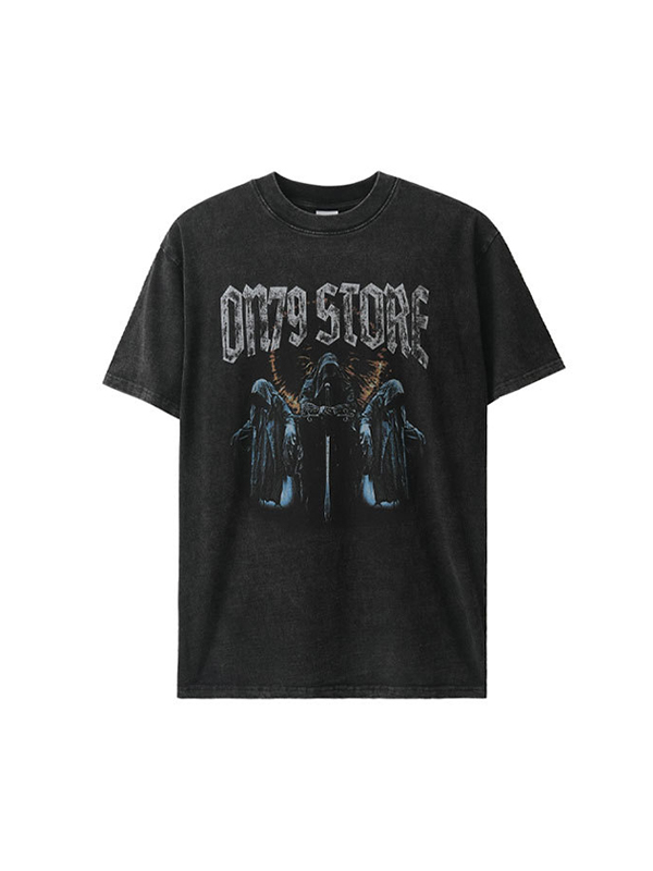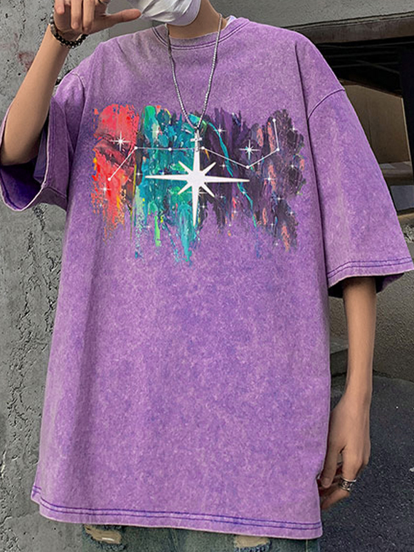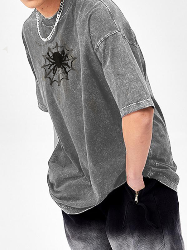 Men’S Spider Print Washed Oversized Short Sleeve Tee