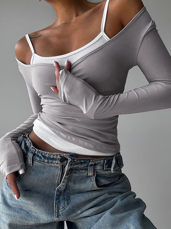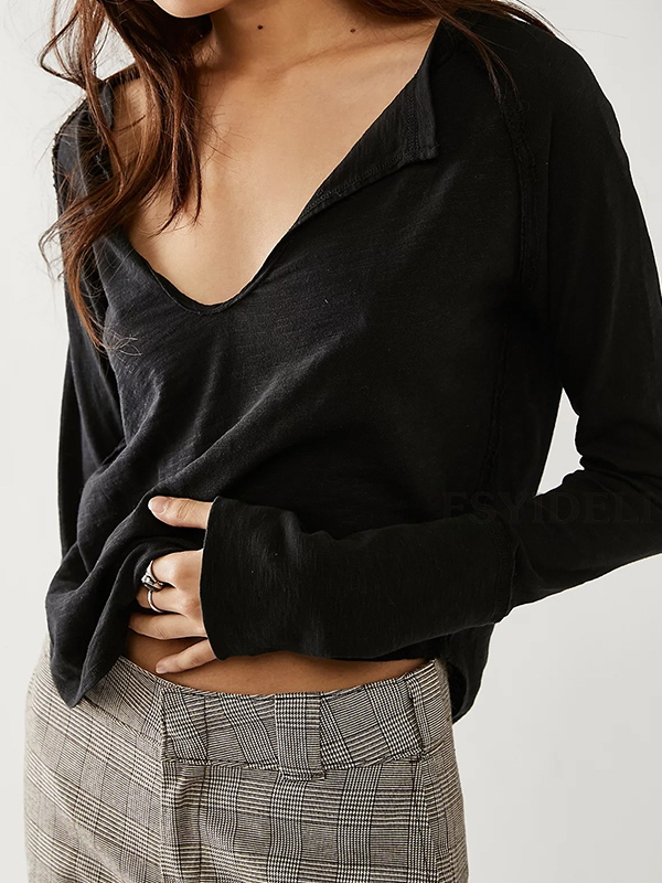 Round Neck Straight Shoulder Long Sleeve T Shirt