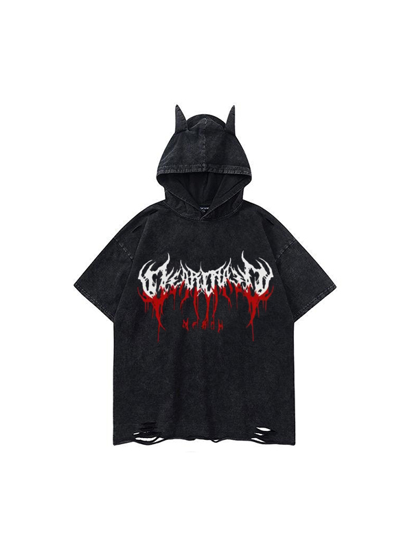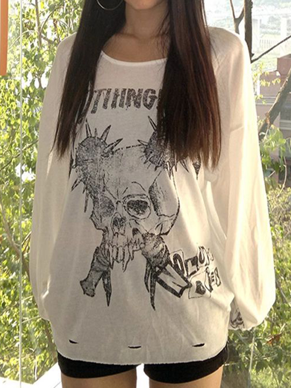 Men’s Skull Hooded Oversized Long Sleeve Tee