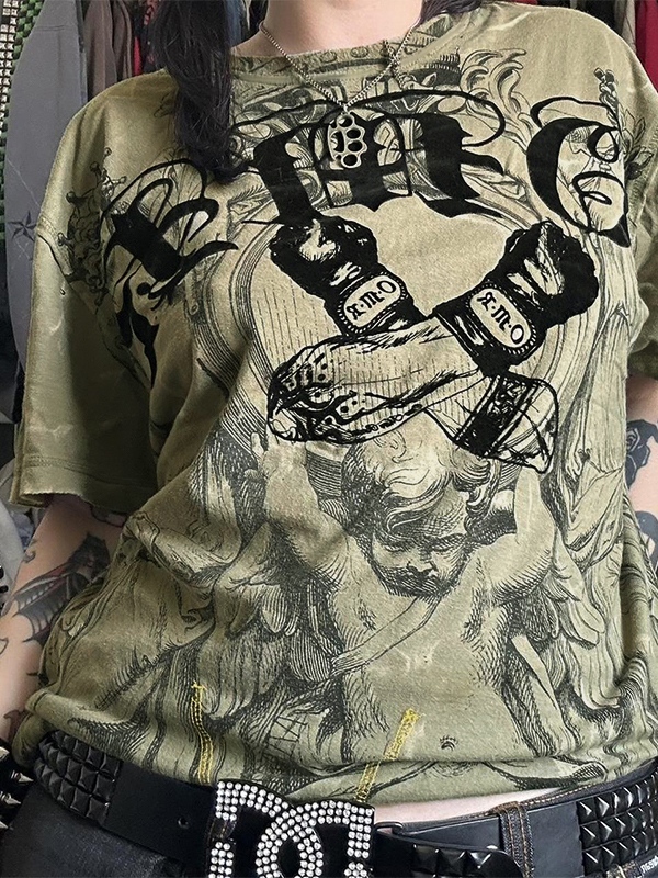 Vintage Statue Print Oversized Short Sleeve Tee