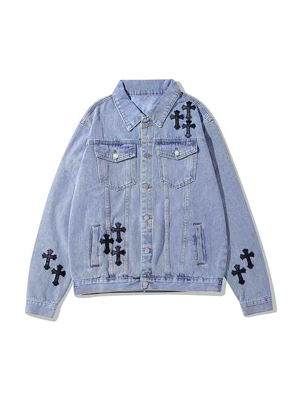 Men’s Vintage Cross Print Denim Jacket