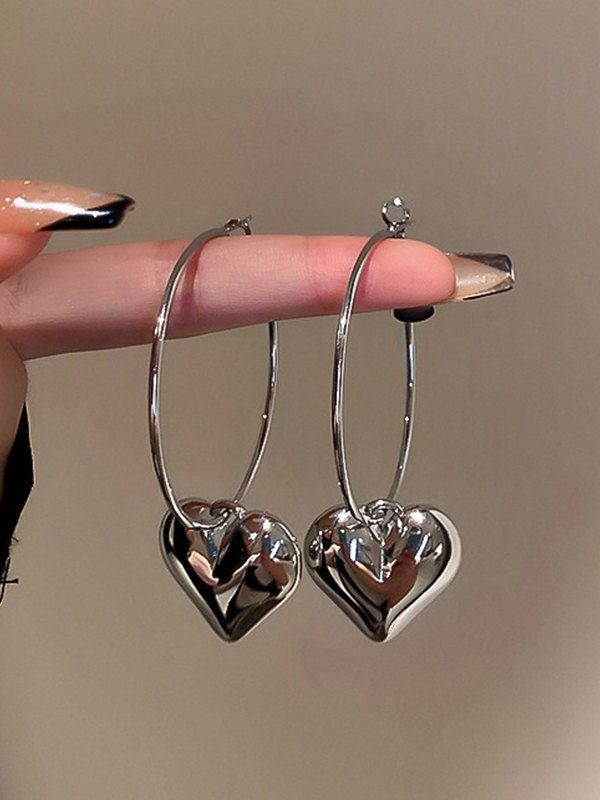 Silver Heart Charm Hoop Earrings