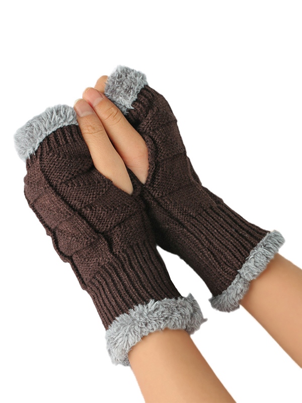 Fingerless Thick Warm Fleece Lining Knitted Gloves