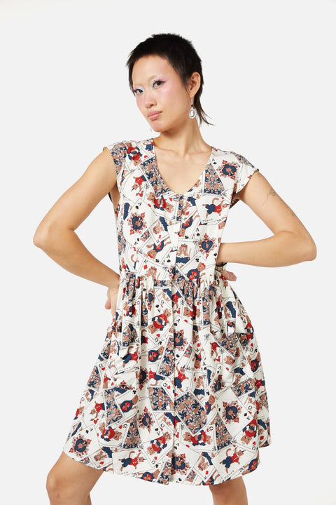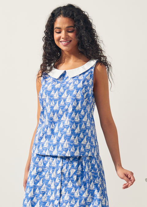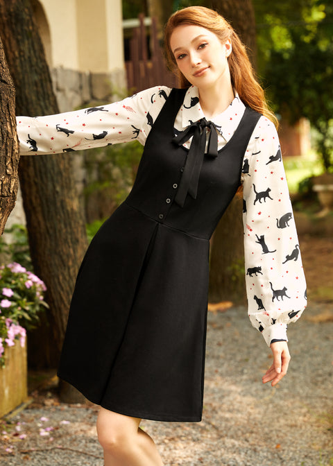 Vestido sin mangas de corte entallado y falda acampanada, de encanto clásico.