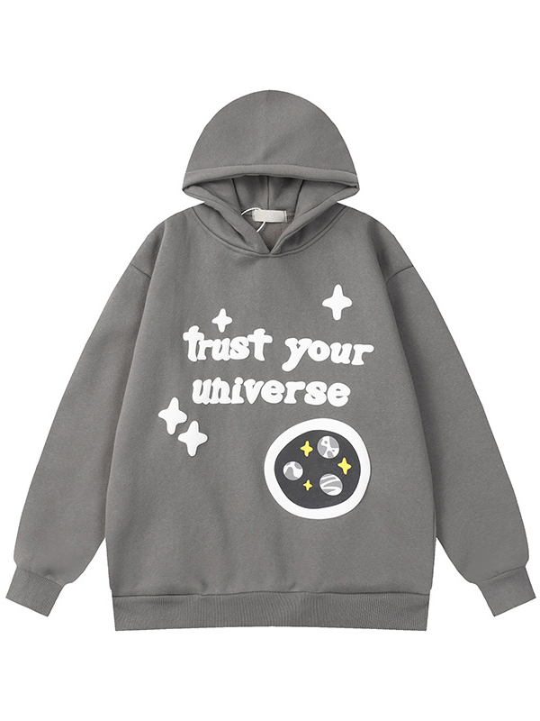 Men’s Foam Letters Flame Print Oversized Hoodie