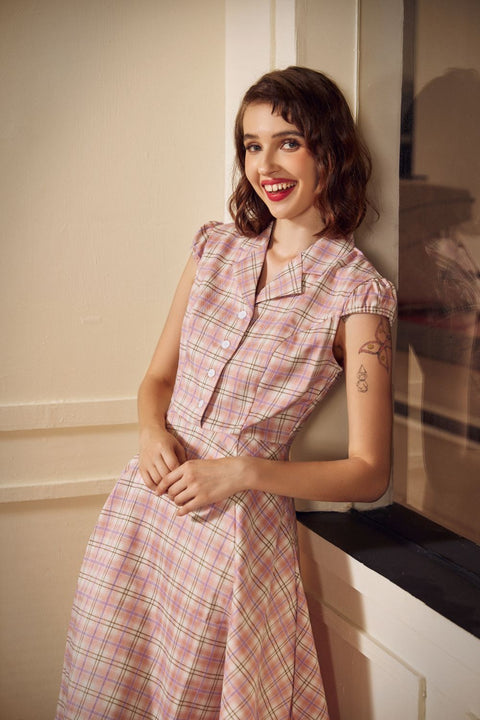 Vestido rosa a cuadros estilo swing