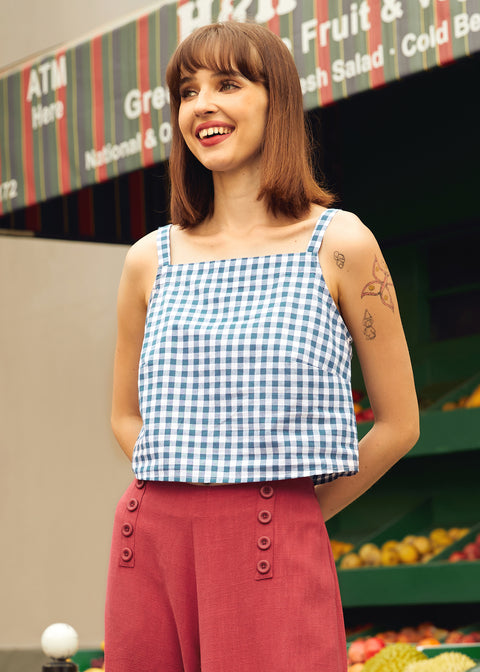 Vestido de vuelo a cuadros rojos