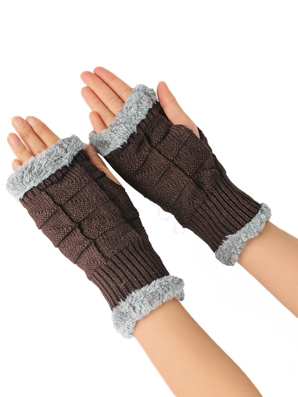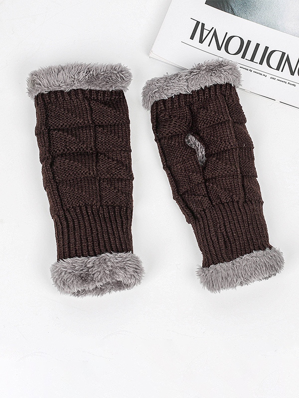 Fingerless Thick Warm Fleece Lining Knitted Gloves