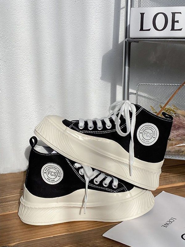 Stylish design: The contrasting color sole on these high-top sneakers adds a stylish touch to any outfit.
