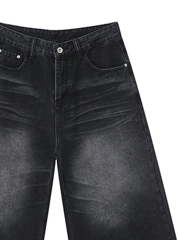 Men’S Retro Washed Wide Leg Straight Denim Shorts